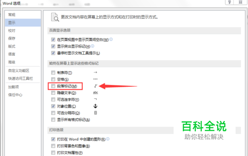 弹出word选项,(上面已经说了,word设置都会走到这一步,不同版本可以查一查word选项在什么地方),点击显示