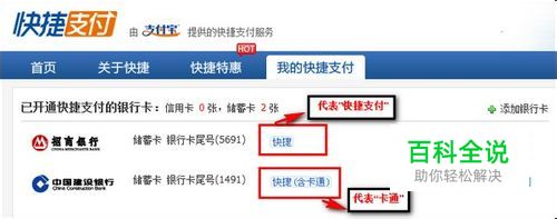注意事项: 储蓄卡和信用卡这一类型的取消快捷的方法一致。 其他银行取消快捷的方法相同。