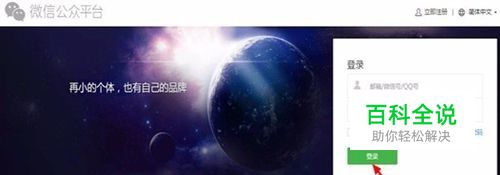 在电脑浏览器搜索栏输入“微信公众平台”,输入用户名、密码,登录账号。如图: