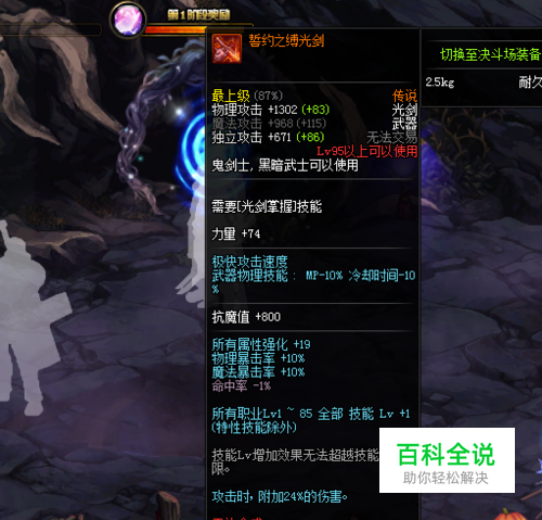 最终你就能获得95级传说武器,等你升级到95级就能使用了,下图演示。