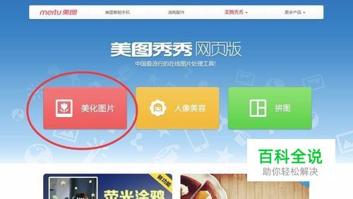 首先打开美图秀秀网页版:http://xiuxiu.web.meitu.com/,点击 美化图片。