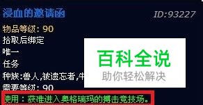 首先:魔兽世界浸血的邀请函明确的作用就是 获准进入奥格瑞玛的搏击竞技场