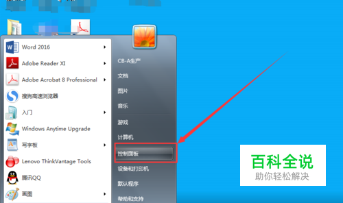 点击桌面左下角的开始图标,然后点击“ 控制面板”。