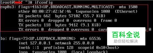 用ifconfig 命令查看,发现网卡已识别,设备名为:enp0s3(请记住,后面需要用到),说明驱动没问题,但没有设置ip。