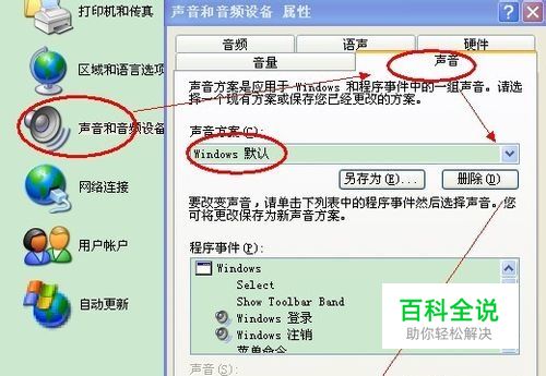 二、退出时声音文件损坏 有些用户启用了声音方案,这样开机、关机等操作时都会有阅耳的音乐声音伴随。但这同样是造成关机故障的一个元凶,即关机时的声音文件损坏。对此,我 们可以进入控制面板,打开“声音和音频设备”项,切换到“声音”标签,然后将“声音方案”设为“无声”,或者将“程序事件”中的“退出Windows”的 声音设为“无”。