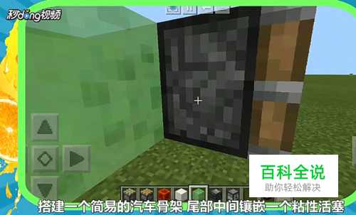 首先用粘液块在地面一方格的位置搭建一个简易的汽车骨架。