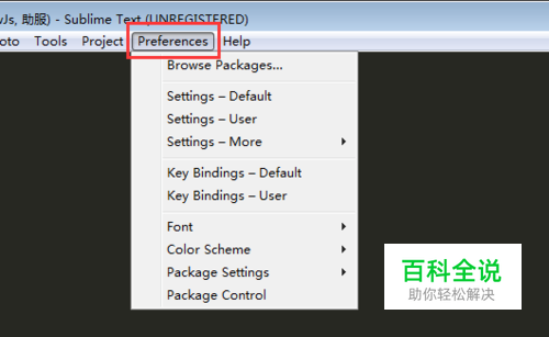 打开Sublime软件,点击工具栏上的"Prefernces"。如图: