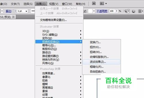 在菜单栏中选择效果-扭曲和变换-波纹效果