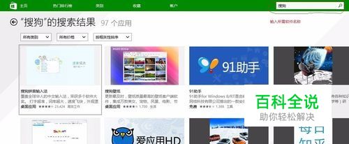 在搜索栏输入你所要寻找的软件(这里以搜狗为例),点击所需软件(搜狗输入法)