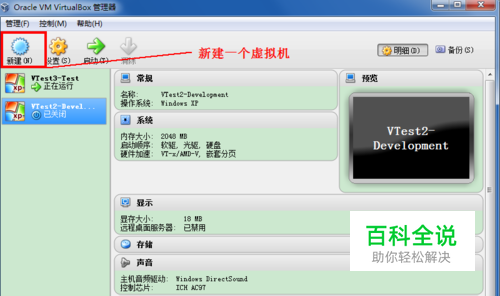 首先,保证我们的VirtualBox虚拟机已经正确安装成功,打开已经安装的虚拟机,可以看到右上角有个“新建”按钮,点击这个按钮,就可以开始建立一个虚拟机了