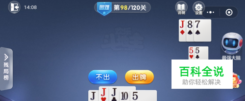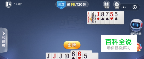 最强大脑打出一张7,我打出一张J,接着打出一张10就过关了。