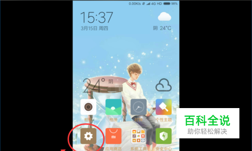 . 首先,我们来到手机桌面,找到“设置 ”进入按钮,点击打开设置按钮 。 .