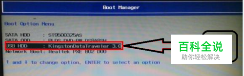 第一步:将带有win10安装镜像包的U盘启动盘插在电脑上,然后重启电脑,然后一直连续敲开机启动快捷键(具体电脑的快捷键是哪一个请参考上一个经验《 U盘(优盘)怎么安装xp系统》的第一步),进入bios启动选择项,按上下键选择USB HDD,然后按enter进入U盘启动。