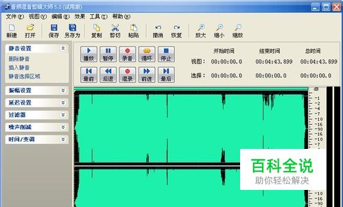 运行桌面上的音频混音剪辑大师软件,点击“打开”,选择您需要音量放大的MP3音乐,软件窗口会显示这首MP3音乐的详细音节,如下图显示;