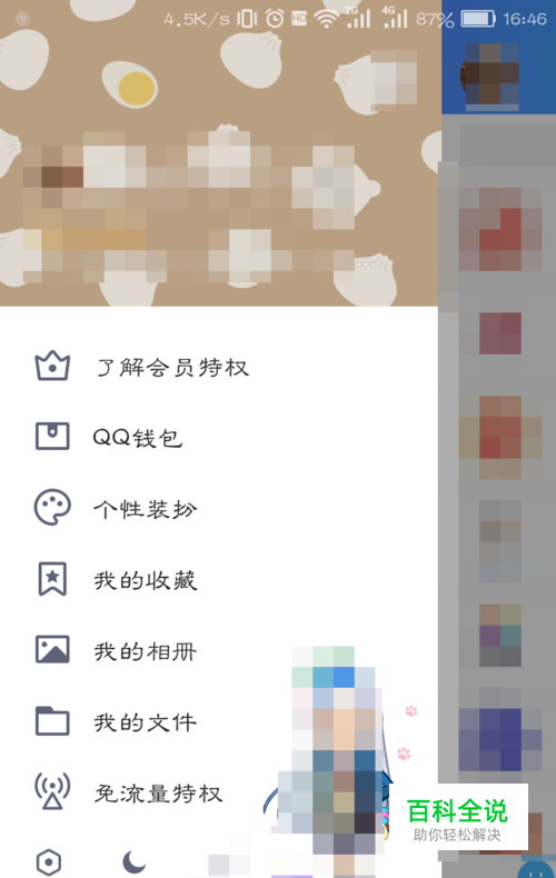 打开手机QQ后,点击QQ头像处,调出侧窗。