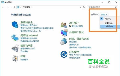 点击右上方的显示方式,切换为小图标。如图所示。