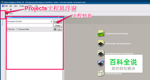 点击左侧的 Projects悬浮窗,会弹出已经存在的工程列表! 【由于没有工程,所以现在是空的】