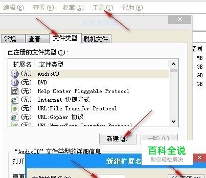 鼠标左键单击“工具”——选择“文件夹选项”,弹出的对话里选择“文件类型”
