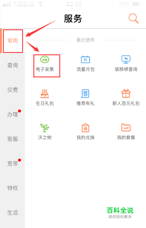 点击底部的“服务”,在“服务”中找到“电子发票”。