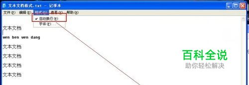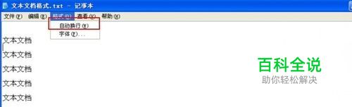首先打开你的文本文档后点击格式,查看自动换行是否勾选,如果勾选了没有出现,那么是你的设置步骤出现问题。如果勾选了现在点击勾选掉,保持没有勾选状态。