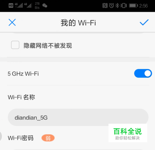 点击进入后,可以看到华为路由器的wifi信息,如果路由器开启了双频模式,会显示2.4G和5G的wifi。