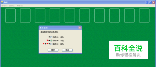 和蜘蛛纸牌的初级玩法的打开方式一样,在开始菜单的全部程序里选择游戏里的蜘蛛纸牌,打开后会让你选择,请选择中级,打开后有两种颜色的纸牌,红色和黑色。