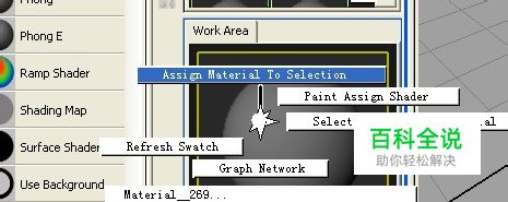接下来在材质球上,鼠标右键向上,选择Assign material to selection,即可将材质球的属性赋予物体。