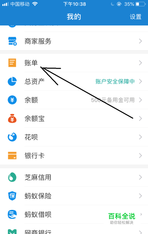 在我的界面中点击帐单选项。