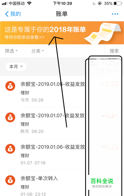 进入到帐单界面选项,在这页面记录你的帐单情况,比如消费。此时我们点击顶部的“这是专属于你的2018年帐单”这标语。