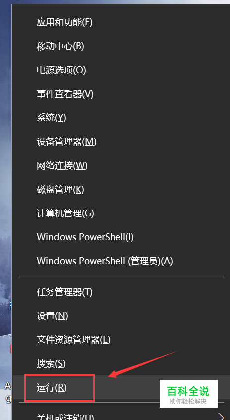 首先回到桌面,鼠标右键单击开始win徽标,右键菜单点击运行,或者直接WIN+R组合键亦可,如下图所示