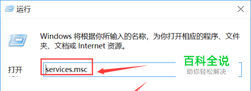 跳出运行对话框,输入services.msc点击确定按钮,如下图所示