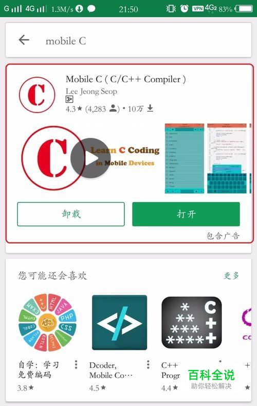 我们打开谷歌应用商店 在搜索框里输入 mobile c查找应用程序 下载并安装好
