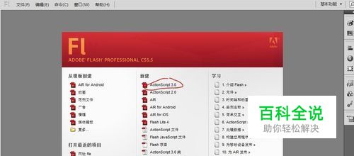 打开flash软件,新建一个actionscript3.0项目