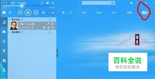 酷狗的桌面写真是在“歌词”按钮里设置的,所以在界面找到“歌词”按钮,点击