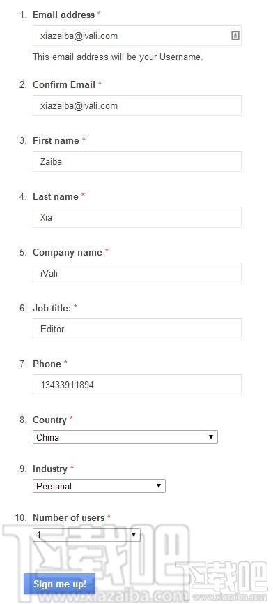 以上信息都可以随意填写,能真实的就尽量真实,比如国家。最后点击【Sign me up】。