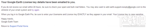 提示:收不到邮件或不想注册的童鞋可下载免注册的谷歌地球专业版中文特别版,永久无任何功能限制的Pro版本。