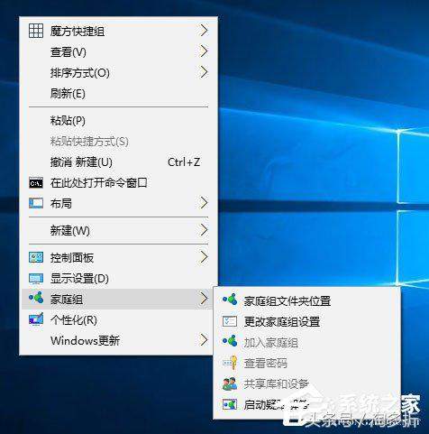 Win10桌面右键菜单如何添加家庭组?