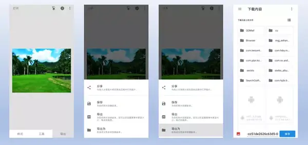 以上就设置完成了,终于到了导出的步骤了。回到主界面,点击“导出”会发现下面有三个导出的选项,这就比较懵了。那么我来介绍下这三者的区别,“保存”是以默认的尺寸、默认的压缩质量保存到默认的相册中,这个选项在苹果端和安卓端还有一些不同:苹果端会顺便保存调整的步骤,下次打开这张照片时就可以看到上次的调整并且可以继续操作(一年多以前我使用苹果的时候是这样,现在是不是我就不知道了),而安卓端就不可以;“导出”是以我们刚刚设置的那个尺寸和压缩质量保存在默认相册中;“导出为”和“导出”唯一的不同是需要自己选择存储位置,这和电脑上的“另存为”非常相似。我们只用“导出”和“导出为”这两个选项。
