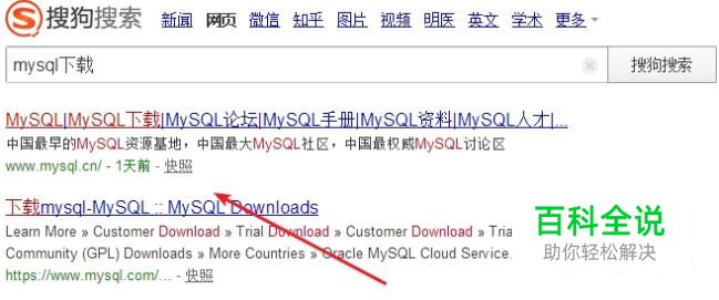 打开搜狗搜索,搜索关键字MySQL下载。如图所示:
