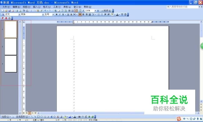 在电脑上新建一个word,并在文档中新建三张空白页(比如我们要把第二张横向显示)如图所示。