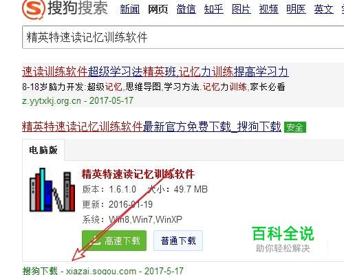 打开搜狗搜索,搜索关键字"精英特速读记忆训练软件"。如图所示: