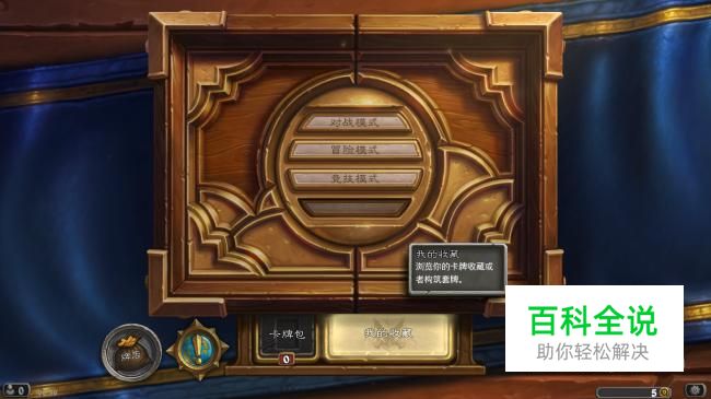 勇闯安戈洛推出的卡牌都是可以通过合成获得的,而且葛拉卡爬行蟹这张卡只是蓝卡,合成花费的代价不会太高,所以可以优先考虑合成。进入游戏,找到我的收藏。