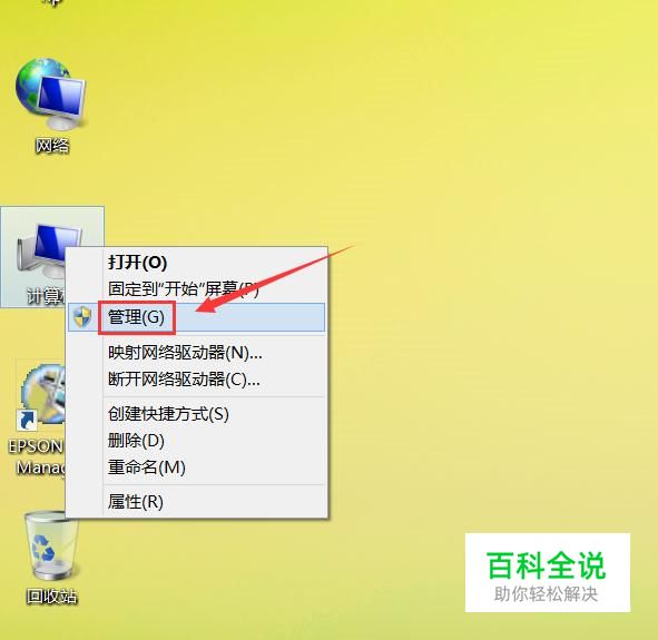 在桌面上找到计算机的快捷图标,点击鼠标右键找到管理选项,如图所示: