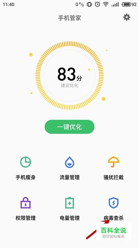 进入手机管家后,选择“病毒查杀”