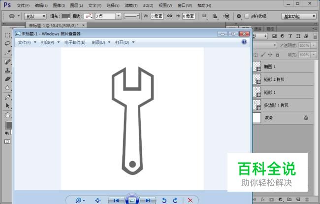 下面我们再选择六边形环的图层,用矩形减去上面部分,如图所示,这就画好了扳手的头部。