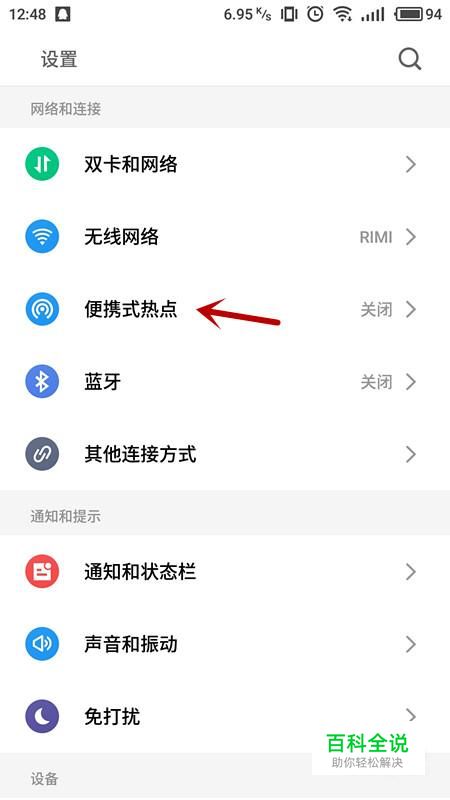在设置选项中,选择“便携式热点”,热点的意思就是共享网络的意思,便携式简单易懂,因为手机便携嘛。