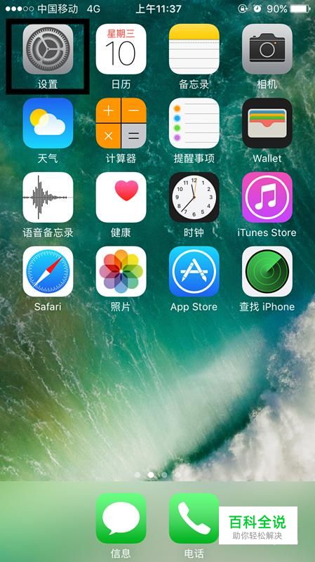 在主屏幕上点击设置。