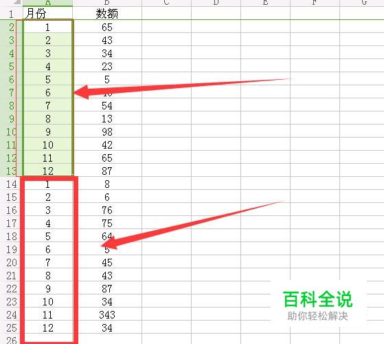 如图所示,小编临时准备的两组数据,用月份来进行分类。
