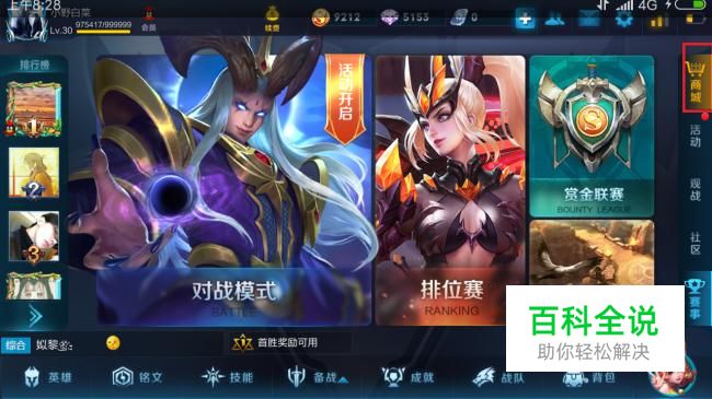 打开王者荣耀APP,进入游戏首页,在右边通知栏的菜单“商城“按钮。