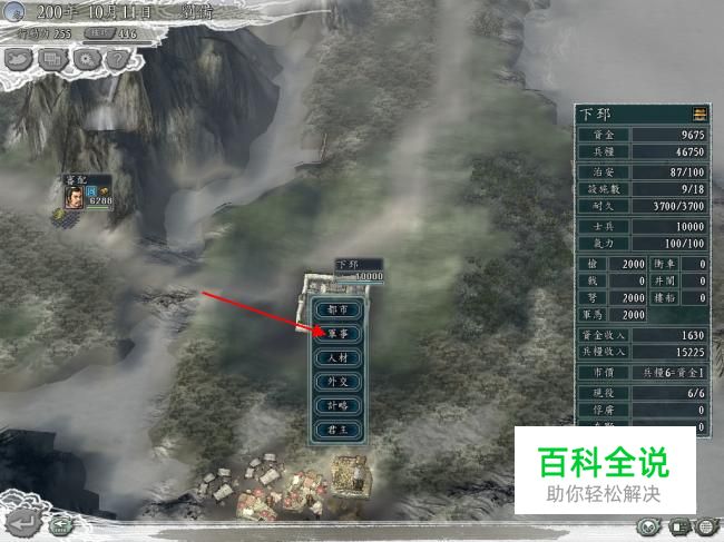 选择一个城市,我们可以看到有都市,军事,人才,外交,计略,君主几个选项。大家都知道,出征属于军事,所以接下来我们要看军事了。